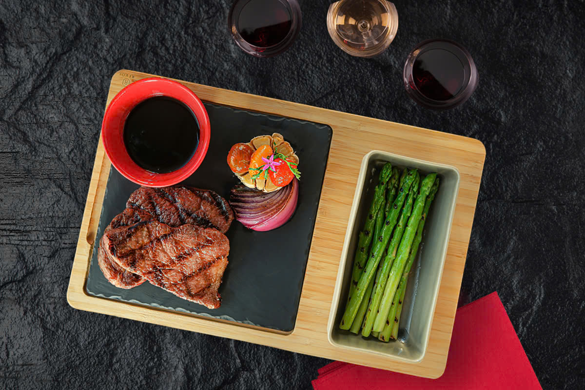 A flavourful, tender, melt-in-your-mouth beef with a triangular shape, comes along with a complimentary signature side dish and a selection of savory sauces.